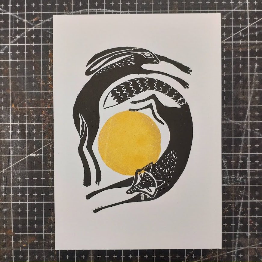 Cartes postales artisanales en linogravure // Motifs répétitifs