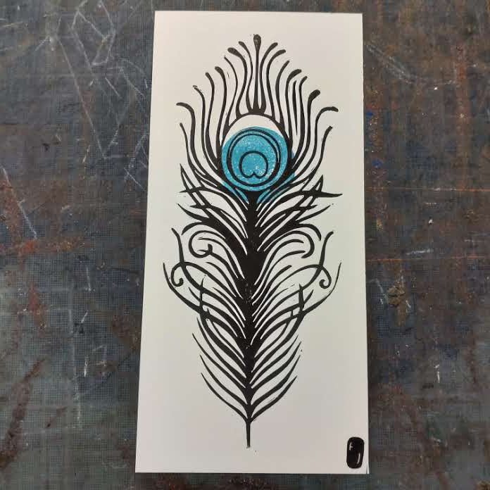 Cartes postales linogravées // Plume de paon