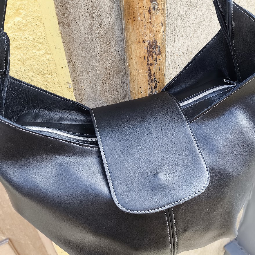 Une grande poche principale zippée et une séparation intérieure, rabat aimanté