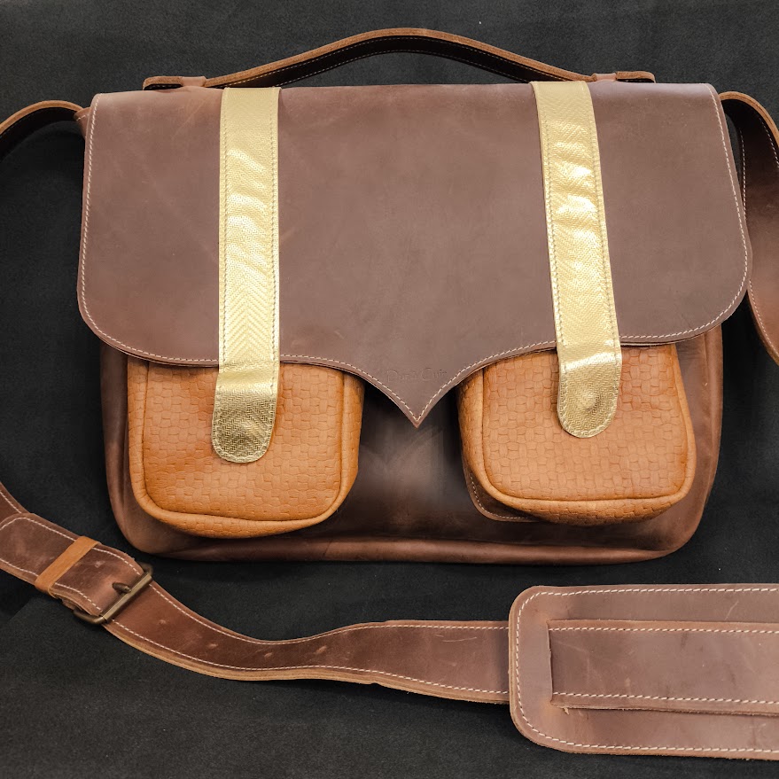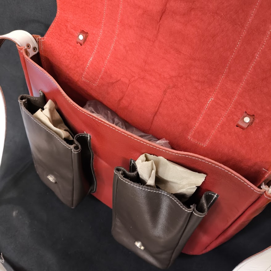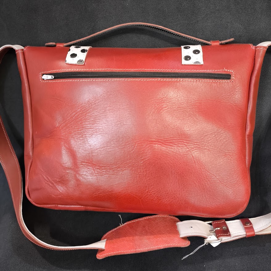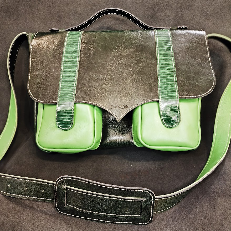 Grand compartiment avec deux poches à l’avant, fermeture aimantée, poche zippée à l’arrière